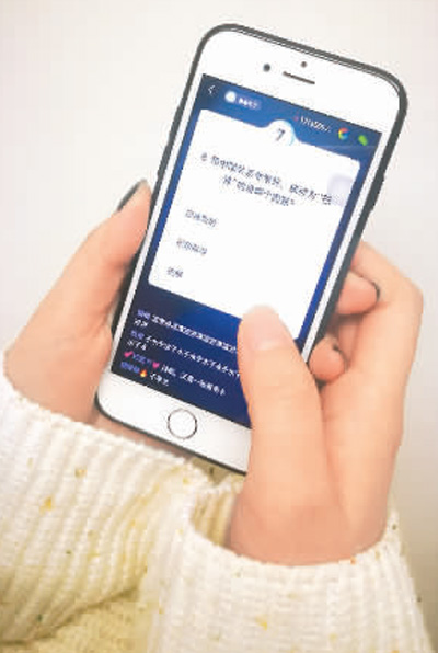 “人民日報海外版?zhèn)b客島的作者一般自稱為島叔和什么?”“當(dāng)然是島妹啊!”伴隨著手機(jī)屏幕上緊張的10秒倒計時,武漢的蔡家欣迅速地點擊了正確答案。她的微信群里,一起答題的小伙伴們都在一邊緊張地答題,一邊熱烈地討論著。