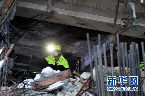 事態(tài)果然如傅崐萁所擔心的,隨著大雨不斷,幾乎每個小時都有余震,搜救環(huán)境變得越來越惡劣,到下午4點左右,由于大樓固定鋼梁出現(xiàn)滑動情形,救災人員不得不從樓中撤出,救災工作暫停。現(xiàn)場施工人員運來巨大的攔洪用消波水泥塊及混凝土,澆筑成鋼梁的基樁,以避免建筑物因余震造成二次損傷,保證搜救人員安全。