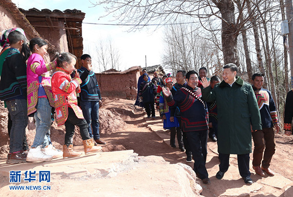2018年2月11日上午,習(xí)近平驅(qū)車2個(gè)多小時(shí),從西昌市來(lái)到位于大涼山深處的昭覺(jué)縣三岔河鄉(xiāng)三河村、解放鄉(xiāng)火普村,走進(jìn)彝族貧困群眾家中,問(wèn)冷暖、聽心聲。
