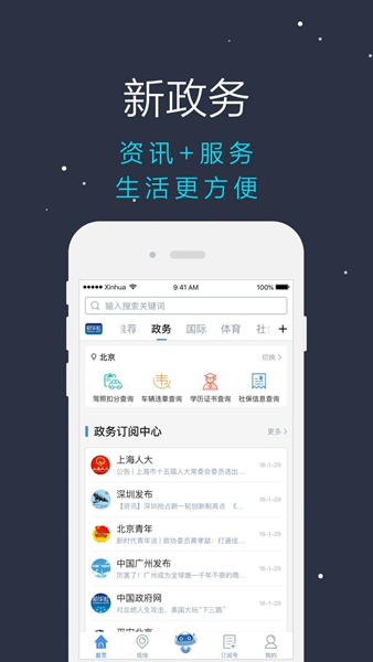 新華社已與3000多家地方政府機(jī)構(gòu)簽訂內(nèi)容合作協(xié)議,來自全國(guó)的政務(wù)資訊與新華社客戶端實(shí)現(xiàn)互聯(lián)互通、同步發(fā)布,用戶可以自主訂閱各地各類政務(wù)專欄。在新聞服務(wù)的基礎(chǔ)上,新版開始向功能性政務(wù)服務(wù)延伸,為全國(guó)用戶提供包括駕駛扣分、車輛違章、學(xué)歷證書和社保信息等多種查詢服務(wù)。