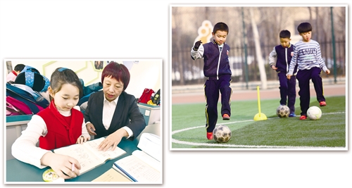天津市河西區梧桐小學學生在進行課后足球訓練。 劉東岳攝