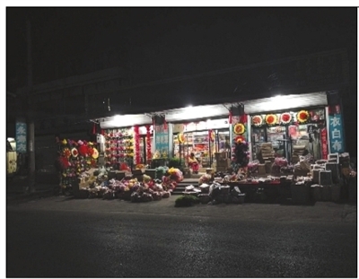 3月29日,村內一家營業到十一點多的殯葬品零售批發店。
