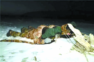 戰士身著新式雪地偽裝服潛伏
