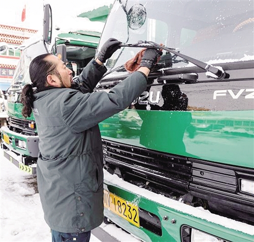 其美多吉在出班前檢查車輛。經濟日報-中國經濟網記者 張 雪攝
