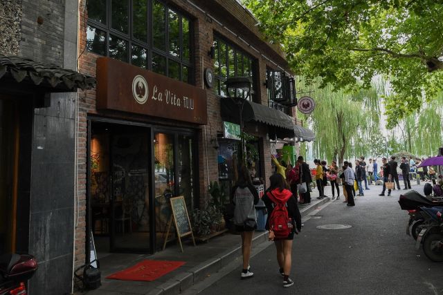 游客從“初心”咖啡館的門前經(jīng)過。靠近杭州南山路的“初心”咖啡館以前是“東籬會(huì)所”,如今成了別有風(fēng)味的大眾咖啡館。新華社記者 黃宗治 攝
