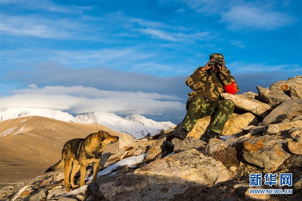 買買提努爾·吾布力艾山在邊境巡邏(2017年5月7日攝)。新華社記者 江文耀 攝