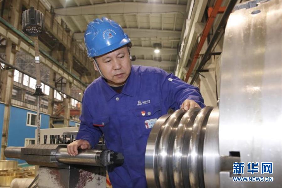 “首屆中國(guó)質(zhì)量工匠”、哈爾濱電機(jī)廠有限責(zé)任公司車工裴永斌在車間工作(資料照片)。新華社發(fā)
