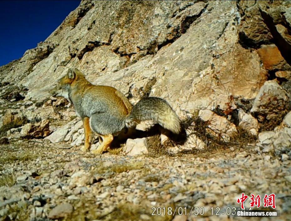 紅外相機拍攝到一只藏狐。文/趙朗 曾嘉 監測畫面