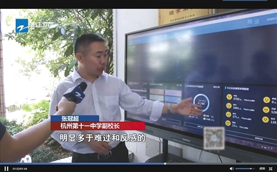 5月15日,杭州第十一中學(xué)副校長(zhǎng)張冠超介紹“智慧課堂行為管理系統(tǒng)”。浙江衛(wèi)視截圖