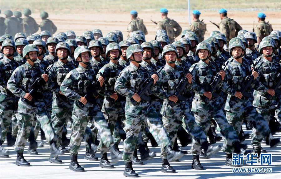 2014年8月24日,中國人民解放軍參演部隊在“和平使命—2014”上海合作組織成員國武裝力量聯合反恐軍事演習開始儀式上舉行分列式。17歲,恰如風華正茂的青年。自世紀之初誕生于上海黃浦江畔,上海合作組織走過一段不平凡的發展歷程,和平穩定能力不斷增強、發展動能不斷涌現、影響力不斷提升,邁入蓬勃發展新階段。17載風雨同舟,上合組織走出了一條相互尊重、公平正義、合作共贏的新型國際關系之路。初夏6月,上合組織成員國元首理事會第十八次會議將在中國海濱城市青島舉行。弘揚“上海精神”、總結成功經驗、共同規劃未來、推動擴員后的上合組織加強新老成員間的合作,青島峰會必將成為上合組織發展史上一座新的里程碑,續寫這一新型區域組織的新篇章。新華社記者 張領 攝