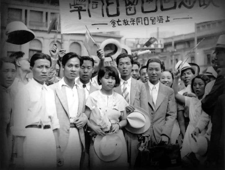 在上海街頭抗議示威的中國青年