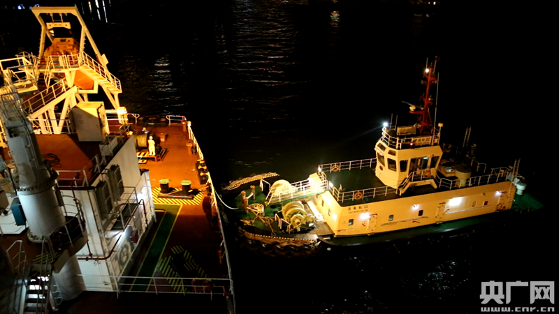 聽到指令后,停在貨輪一側的拖輪那頭回應:“拖輪,收到!”