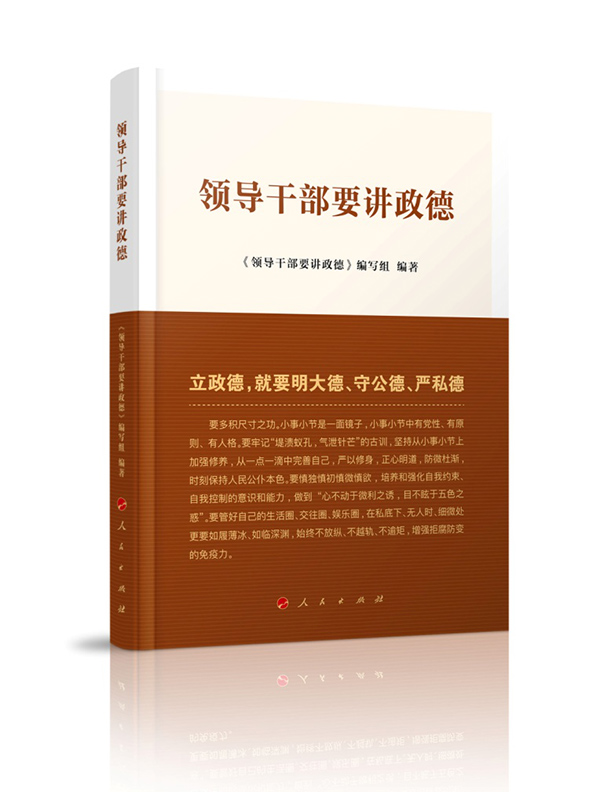 領導干部要講政德。政德是整個社會道德建設的風向標。為了幫助廣大領導干部樹立良好的政德,人民出版社近日出版了由中央黨校督學組督學洪向華教授組織有關專家學者編寫的《領導干部要講政德》一書,即日起全國新華書店發行。
