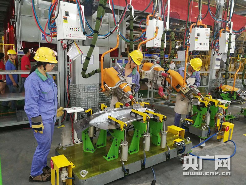 記者來到總裝車間內(nèi),焊裝機(jī)器正不間斷的工作著。
