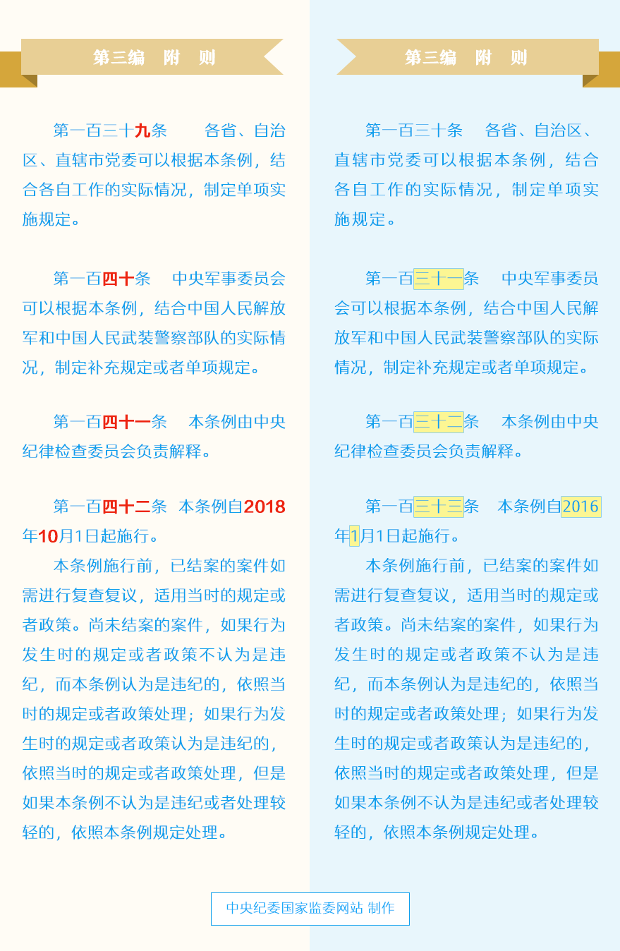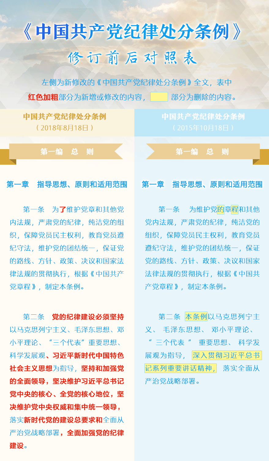 《中國共產(chǎn)黨紀(jì)律處分條例》修訂前后對照表-新華網(wǎng)