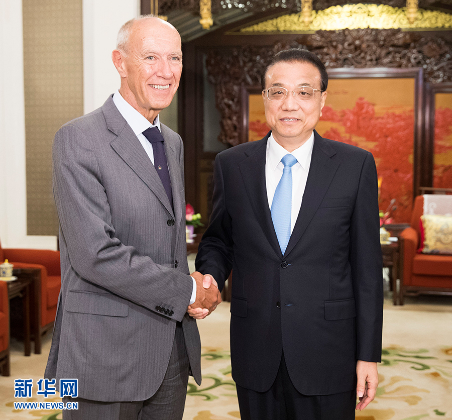 8月28日,國務院總理李克強在北京中南海紫光閣會見來華出席“一帶一路”知識產權高級別會議的世界知識產權組織總干事高銳和與會代表。新華社記者黃敬文攝