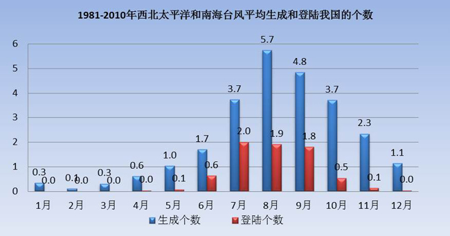 圖1 1981-2010年西北太平洋和南海臺風(fēng)平均生成和登陸我國個數(shù) 李慧 制圖