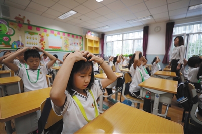 9月19日,朝陽區(qū)實(shí)驗(yàn)小學(xué),老師在指導(dǎo)學(xué)生做眼保健操。 新京報(bào)記者 王飛 攝