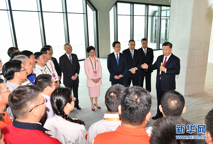 ?  10月23日上午,港珠澳大橋開通儀式在廣東省珠海市舉行。中共中央總書記、國家主席、中央軍委主席習近平出席儀式,宣布大橋正式開通并巡覽大橋。這是習近平會見大橋管理和施工等方面的代表,同他們親切交談。 新華社記者殷博古攝