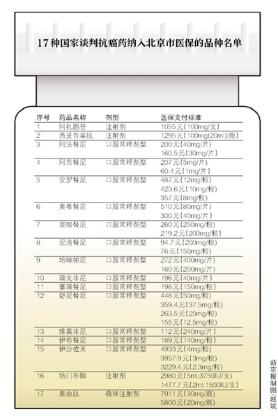 為做好國家談判的17種抗癌藥供應保障,北京市衛(wèi)生部門近期已將談判藥品按支付標準在藥品陽光采購平臺上公開掛網,要求醫(yī)療機構暢通進院渠道并按新的價格采購和銷售。