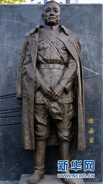位于鳳凰山的陳安寶烈士紀念園由烈士紀念館、故居和烈士陵園三部分組成。紀念館于2014年9月落成,建筑面積1600平方米。走進紀念館,陳安寶將軍縱馬揚鞭、馳騁疆場的銅制雕像首先躍入眼簾。館內史料講述著陳安寶將軍的報國人生,參觀者無不滿懷敬意、感佩連連。
