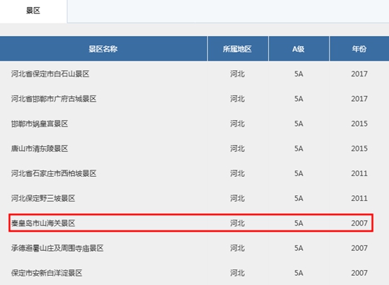 山海關(guān)景區(qū)重回5A級(jí)景區(qū)名錄。來自文化和旅游部