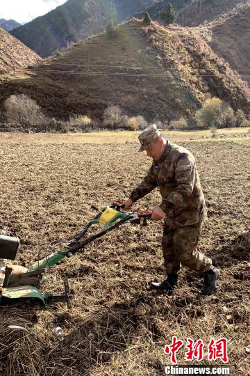 農(nóng)田不翻耕會(huì)影響來(lái)年莊稼收成,村民頓珠今年冬天因生病臥床,無(wú)法下地干活,便民服務(wù)隊(duì)官兵得知情況后,主動(dòng)幫助他翻耕農(nóng)田,10余名官兵現(xiàn)學(xué)現(xiàn)做,用一天時(shí)間將頓珠家的農(nóng)田全部翻耕完成。
