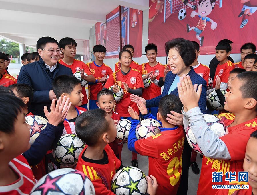 12月11日,中共中央政治局委員、國務(wù)院副總理、中央代表團副團長孫春蘭率中央代表團二分團,帶著以習近平同志為核心的黨中央的親切關(guān)懷和全國人民的美好祝福,赴防城港看望慰問各族各界干部群眾,共同慶祝廣西壯族自治區(qū)成立60周年。這是孫春蘭在東興市足球訓練基地與青少年足球運動員交流。 新華社記者 申宏 攝