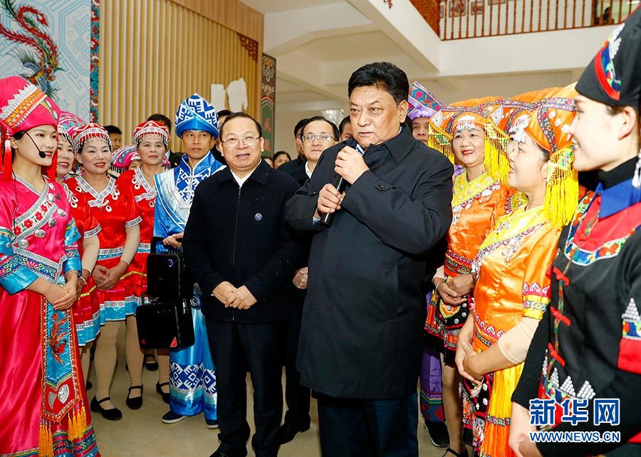 12月12日,全國人大常委會副委員長、中央代表團(tuán)副團(tuán)長白瑪赤林率中央代表團(tuán)四分團(tuán),帶著以習(xí)近平同志為核心的黨中央的親切關(guān)懷和全國各族人民的美好祝福,在來賓市看望慰問各族各界干部群眾。這是白瑪赤林在來賓市興賓區(qū)鳳凰鎮(zhèn)八一文化中心看望在這里活動(dòng)的各族群眾。 新華社記者 陳建力 攝