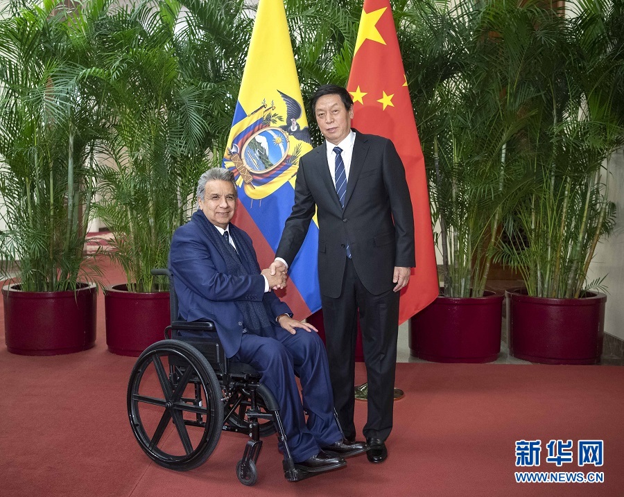 12月13日,全國人大常委會委員長栗戰(zhàn)書在北京人民大會堂會見厄瓜多爾總統(tǒng)莫雷諾。 新華社記者 李濤 攝