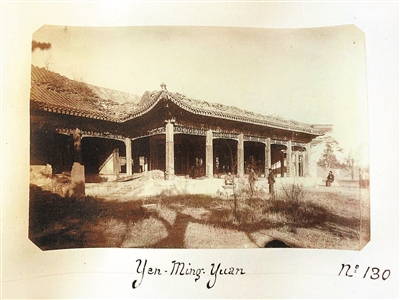 劉陽介紹,此次挖掘出來的這組照片最大價值在于,提供了許多已經被毀的圓明園建筑的原貌。“照片中拍攝了圓明園西部的幾座木構建筑,充分說明作者拍攝時,慎修思永大殿、課農軒、海岳開襟等建筑還沒有被毀。”