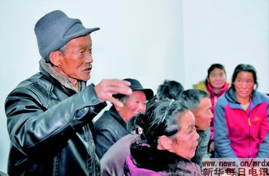 “來來來,都進來,往前面坐!”滿臉笑容的村支書黎平富招呼擠在門口的村民。