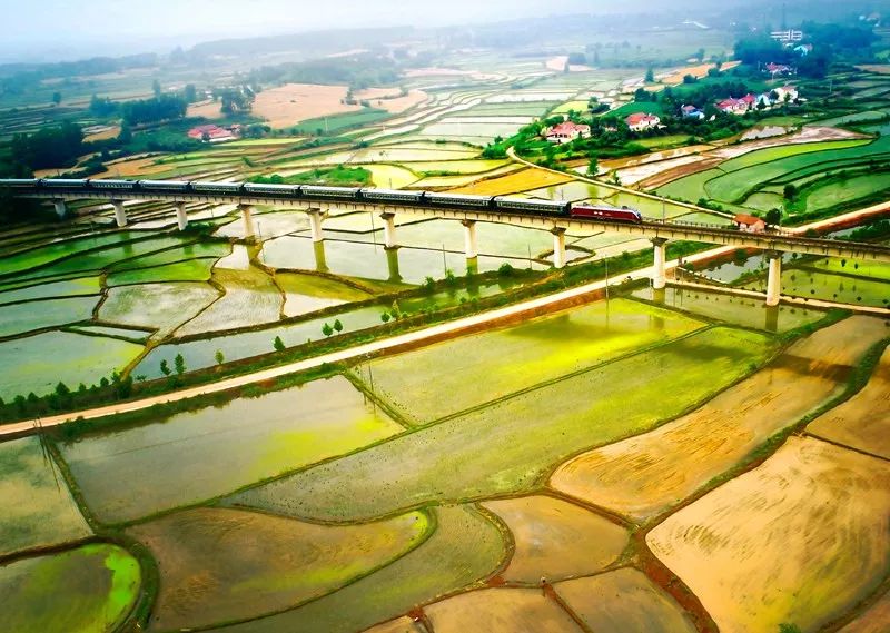 2018-05-19,湖北荊門鐘祥。和諧號(hào)列車奔馳在美麗的田園。作者:大胡子