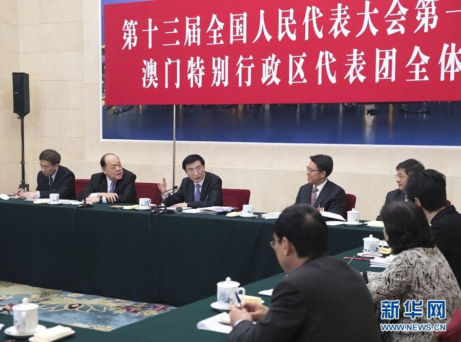 3月6日,中共中央政治局常委、中央書記處書記王滬寧參加十三屆全國人大一次會議澳門代表團的審議。