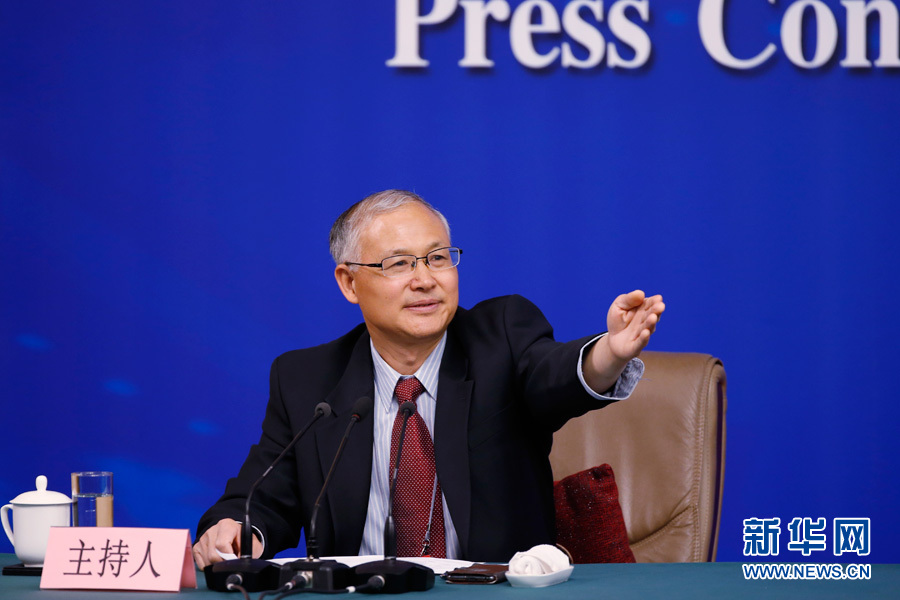 十三屆全國人大一次會議新聞中心于3月7日在梅地亞中心多功能廳舉行記者會,邀請農(nóng)業(yè)部部長韓長賦,農(nóng)業(yè)部新聞發(fā)言人、辦公廳主任潘顯政就“實施鄉(xiāng)村振興戰(zhàn)略 推動農(nóng)業(yè)轉(zhuǎn)型升級”的相關(guān)問題回答中外記者的提問。圖為記者會主持人。新華網(wǎng)/中國政府網(wǎng) 陳杰 攝