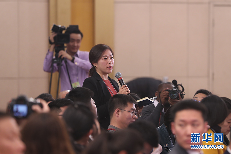 十三屆全國人大一次會議新聞中心于3月7日在梅地亞中心多功能廳舉行記者會,邀請國務院扶貧辦主任劉永富就“打好精準脫貧攻堅戰”的相關問題回答中外記者的提問。圖為四川廣播電視臺記者提問。新華網/中國政府網 曲植 攝