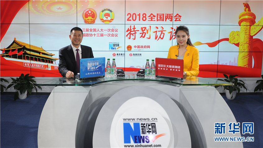 3月9日,全國人大代表、飛鶴乳業(yè)董事長冷友斌(左)做客新華網2018全國兩會特別訪談。新華網 郭小天攝