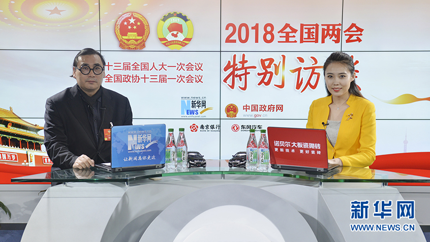 3月10日,全國政協(xié)委員、中國藝術研究院研究生院常務副院長劉萬鳴(左)做客新華網(wǎng)2018全國兩會特別訪談。新華網(wǎng)?李相博攝