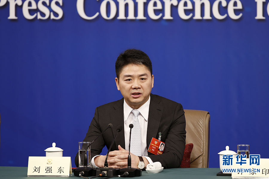 3月10日8時45分,全國政協十三屆一次會議在梅地亞中心多功能廳舉行記者會,邀請5位全國政協委員就“提高保障和改善民生水平”回答記者提問。圖為劉強東委員回答記者提問。新華網/中國政府網?陳杰 攝