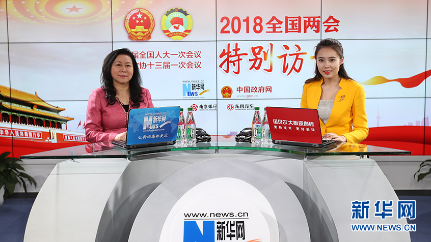 圖為全國政協(xié)委員、新大陸科技集團總裁王晶做客新華網2018全國兩會特別訪談 新華網郭小天攝