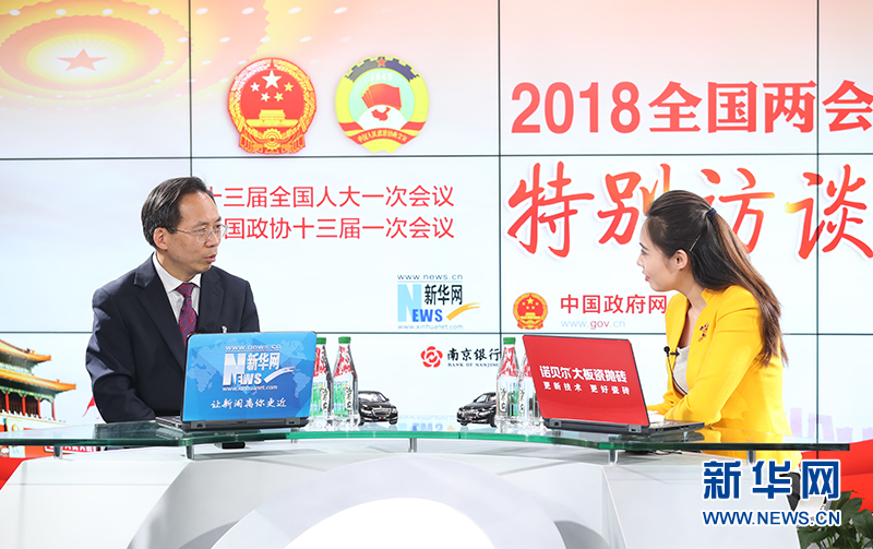 圖為全國政協(xié)委員、中國財(cái)政科學(xué)研究院院長劉尚希(左)做客新華網(wǎng)2018全國兩會(huì)特別訪談。新華網(wǎng) 郭小天攝