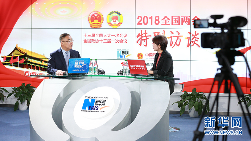 3月12日,全國人大代表,中國中醫科學院院長、天津中醫藥大學校長張伯禮院士(左)做客新華網2018全國兩會特別訪談。新華網 楊锘攝