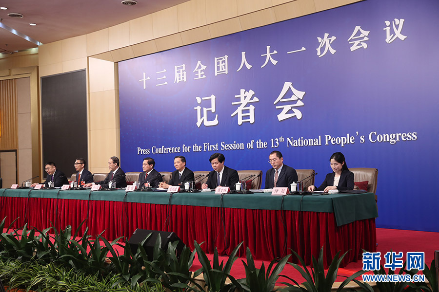十三屆全國人大一次會議新聞中心于3月12日15時在梅地亞中心多功能廳舉行記者會,邀請十二屆全國人大財經委副主任委員尹中卿、教科文衛委副主任委員吳恒、環資委副主任委員袁駟、內司委委員鄭功成,全國人大常委會預算工委副主任劉修文、常委會辦公廳秘書局巡視員傅文杰就“人大監督工作”相關問題回答中外記者提問。圖為記者會現場。新華網/中國政府網 陳杰?攝