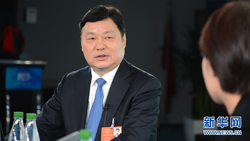 全國人大代表,中國移動湖北公司黨委書記、董事長、總經理范秉衡做客新華網2018全國兩會特別訪談。新華網 楊濛攝