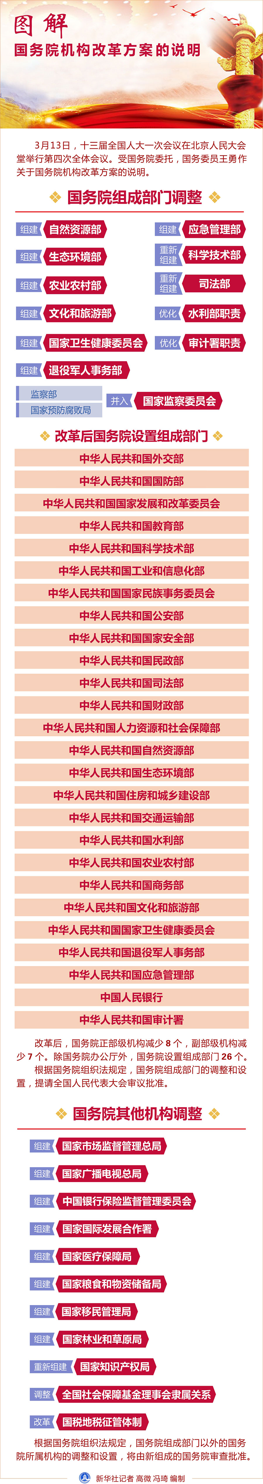 圖表:圖解國務院機構改革方案的說明 新華社記者 馮琦 高微 編制