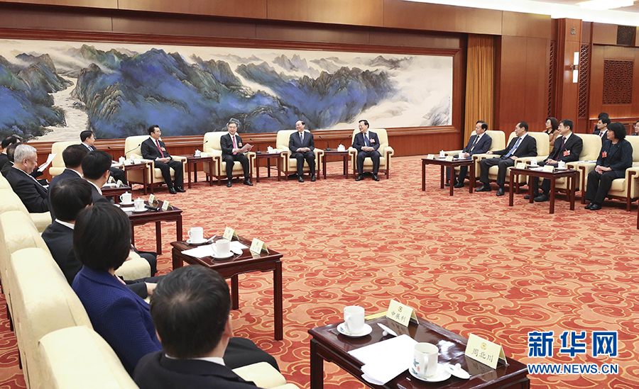 (兩會受權發布)汪洋看望參加全國政協十三屆一次會議報道的新聞工作者