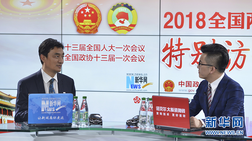 圖為18日,全國人大代表,云南省曲靖市委副書記、市長董保同做客新華網2018全國兩會特別訪談。新華網 李相博攝