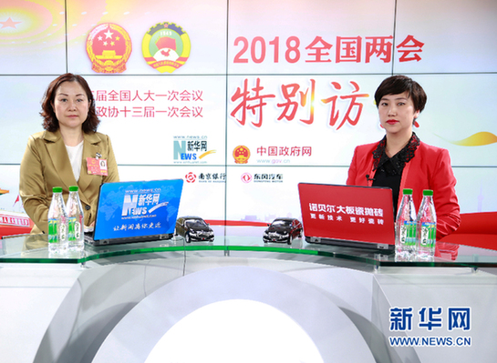 圖為全國人大代表、新野鼎泰高科精工科技有限公司總經(jīng)理王馨做客新華網(wǎng)2018全國兩會(huì)特別訪談