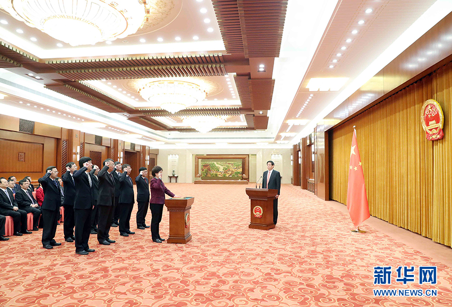 剛剛閉幕的十三屆全國人大常委會第一次會議任命了全國人大常委會副秘書長、預算工作委員會主任、第四任香港特別行政區(qū)基本法委員會主任和第四任澳門特別行政區(qū)基本法委員會主任。根據(jù)全國人大常委會關于實行憲法宣誓制度的決定,上述人員依法進行憲法宣誓。