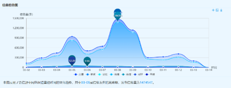 新華睿思大數(shù)據(jù)通過(guò)監(jiān)測(cè)新聞網(wǎng)站、論壇、微信、微博、APP、平媒6個(gè)信源,分析結(jié)果顯示,截至目前,全國(guó)兩會(huì)開(kāi)幕以來(lái),關(guān)于健康中國(guó)的話題共6788791個(gè)。